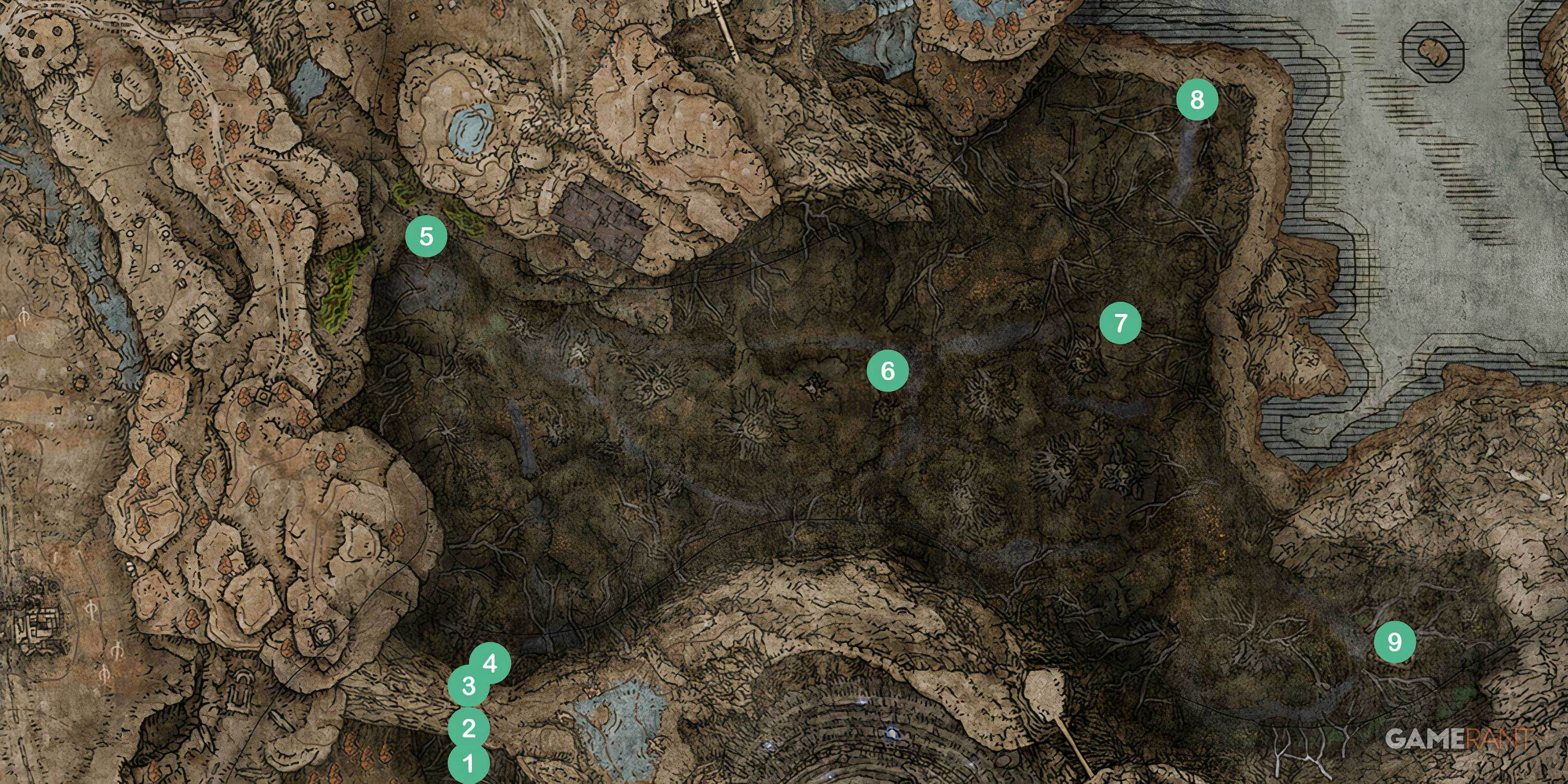 All Abyssal Woods Site Of Grace Locations (Image Credits: GameRant)